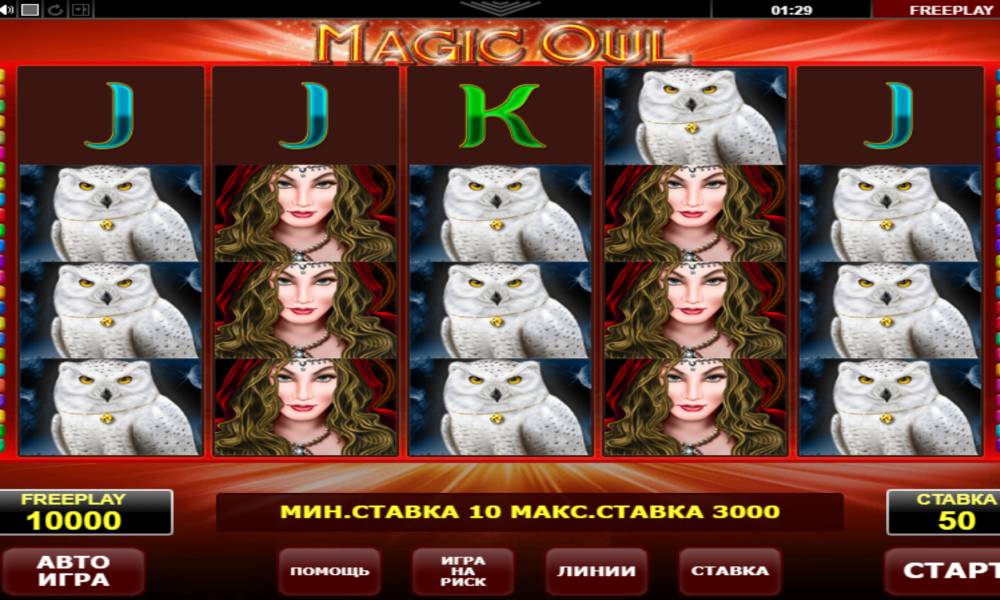 Der Spielautomat Magic Owl des Anbieters Amatic Industries hat ein Standardfeld von 5x4. Die Auszahlungen erfolgen auf 50 Linien.